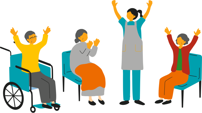 リラックスした雰囲気の中で他の利用者様と会話を楽しみ、笑顔や安心感を共有します。